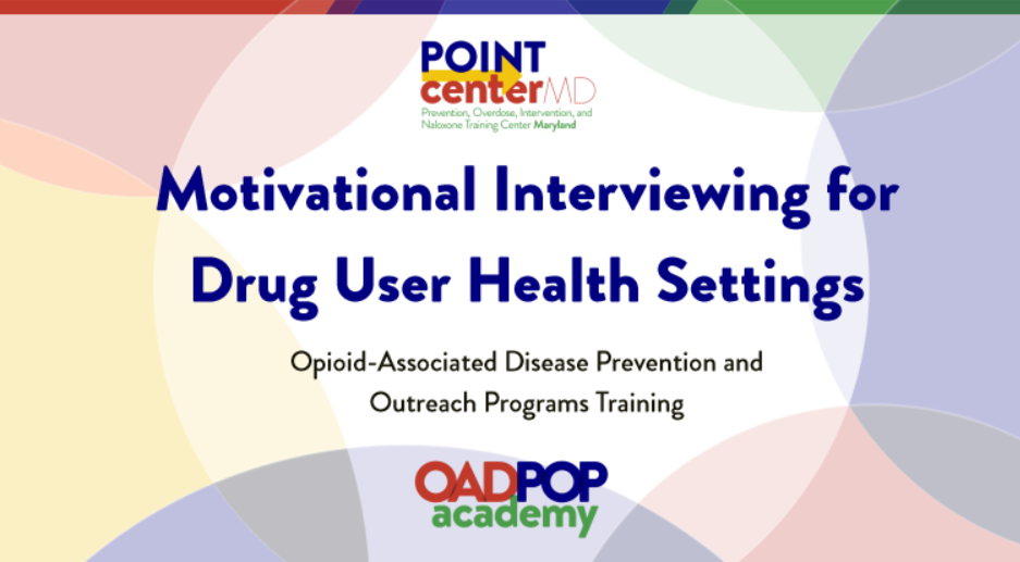 Introduction to Drug User Health offers a foundational overview of drug user health strategies to support people who use drugs. Participants will explore key terms, health risks tied to drug use, and the role of OADPOP in Maryland. The training emphasizes nonjudgmental, practical approaches for safer use, building trust, and promoting public health.